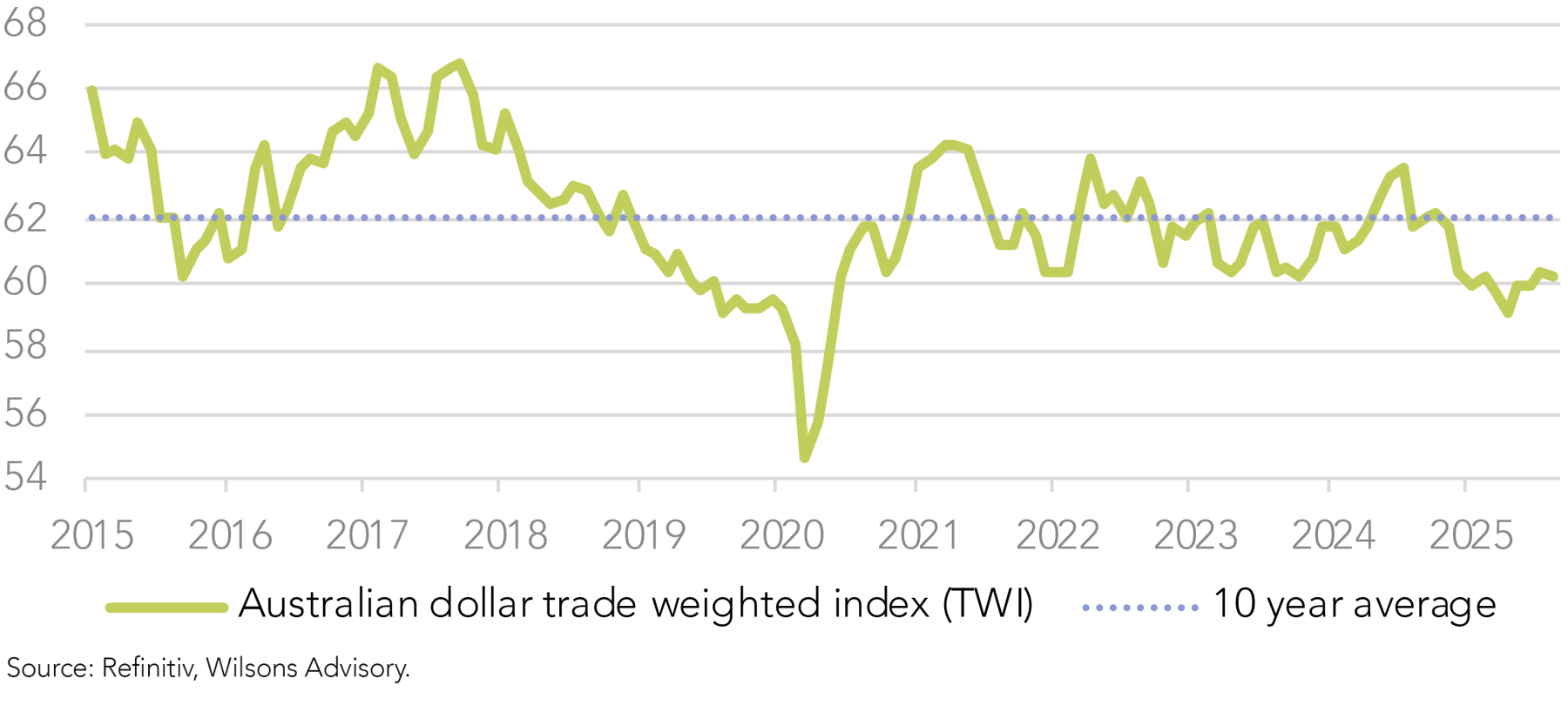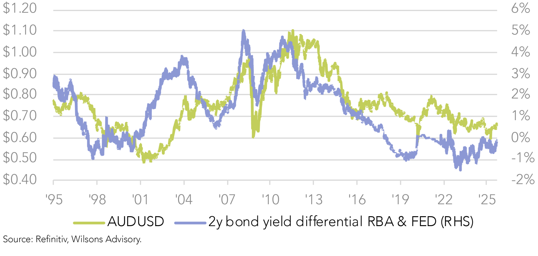 This recovery has been underpinned by several economic and structural factors, most notably the development of broad-based weakness in the US dollar. This has marked a significant turnaround from the US dollar strength narrative that was playing out through late ‘24 and early ‘25. Favourable interest rate differentials, resilient commodity export prices and longer-term valuation anchors have all assisted gains to the Australian dollar.