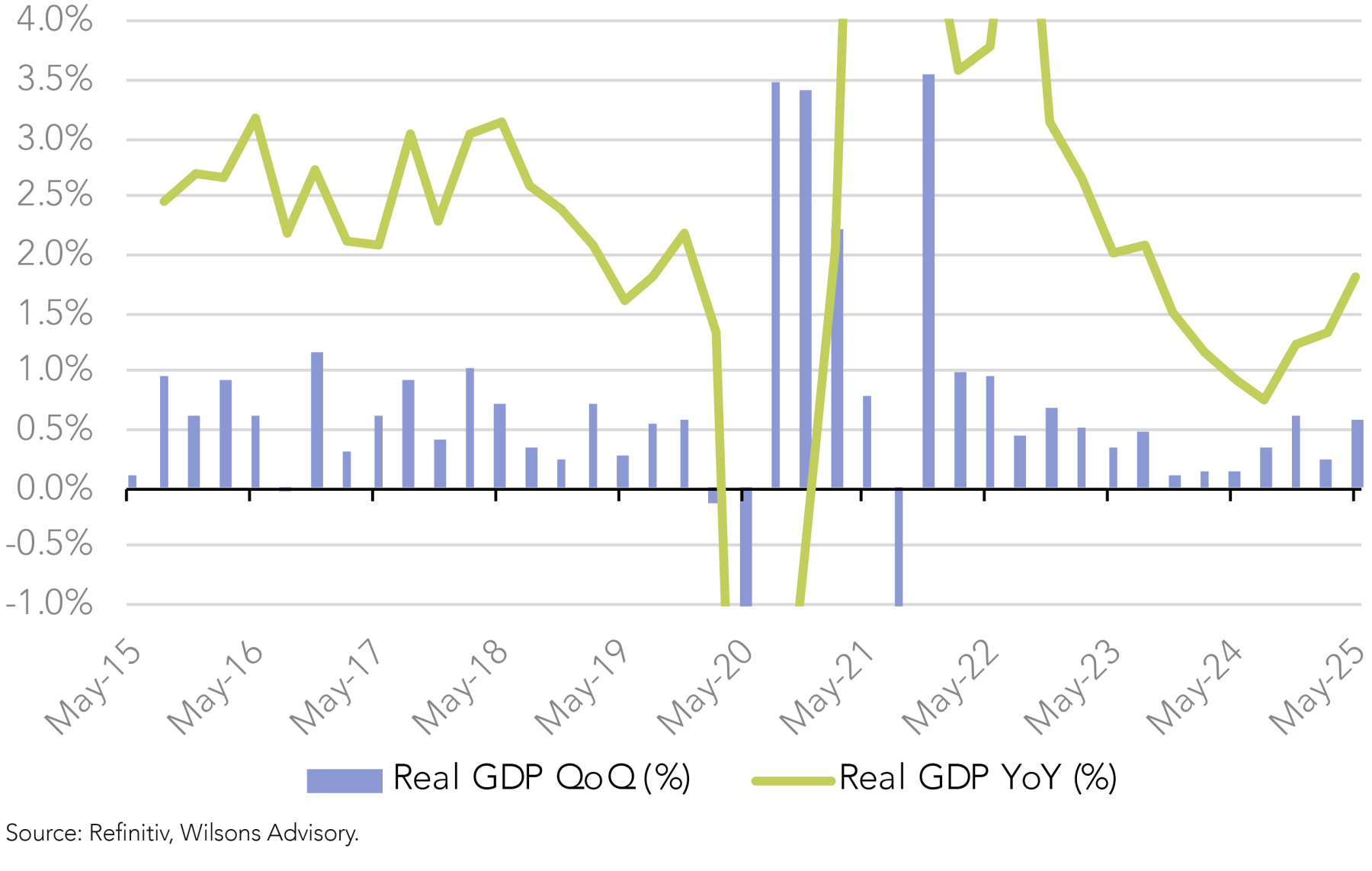 Disclaimer: This communication has been prepared by Wilsons Advisory and Stockbroking Limited (ACN 010 529 665; AFSL 238375) and/or Wilsons Corporate Finance Limited (ACN 057 547 323; AFSL 238383) (collectively “Wilsons Advisory”). It is being supplied to you solely for your information and no action should be taken on the basis of or in reliance on this communication. To the extent that any information prepared by Wilsons Advisory contains a financial product advice, it is general advice only and has been prepared by Wilsons Advisory without reference to your objectives, financial situation or needs. You should consider the appropriateness of the advice in light of your own objectives, financial situation and needs before following or relying on the advice. You should also obtain a copy of, and consider, any relevant disclosure document before making any decision to acquire or dispose of a financial product. Wilsons Advisory's Financial Services Guide is available at wilsonsadvisory.com.au/disclosures.