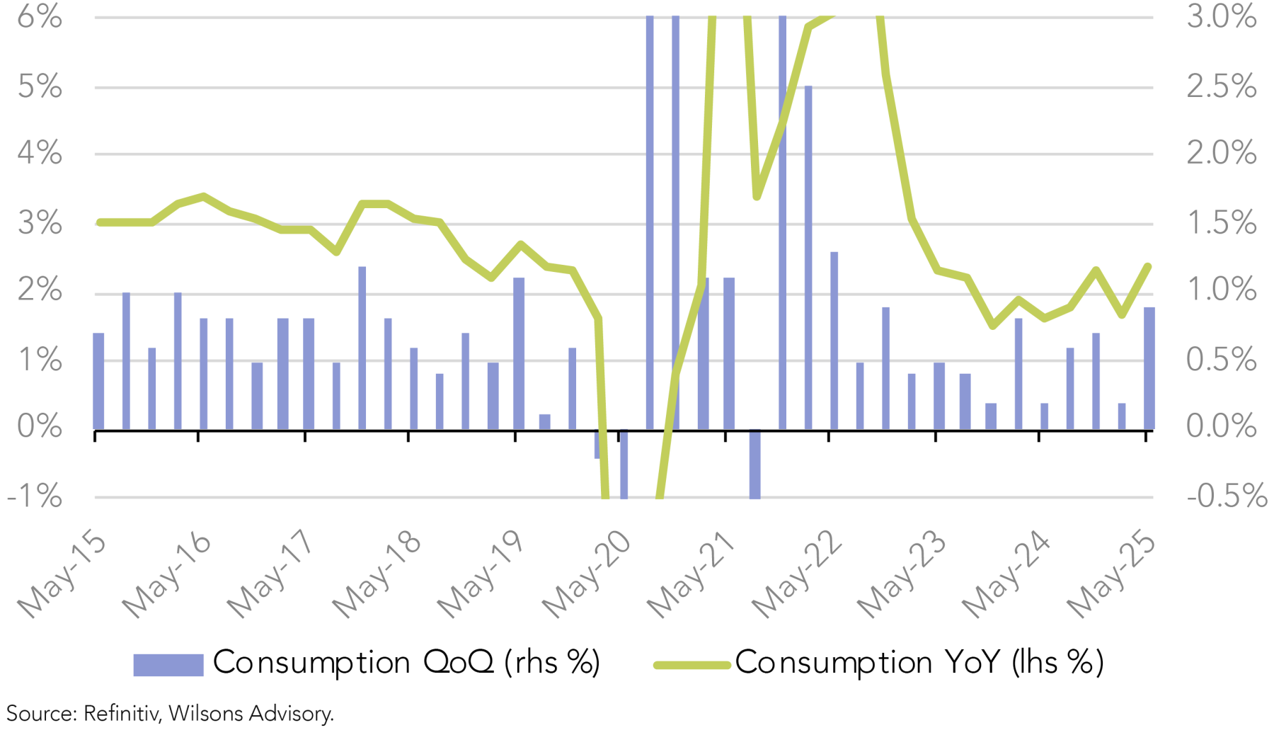 The consumption growth improvement was supported by end of financial year sales and the proximity of Anzac Day to Easter, which boosted discretionary holiday spending. Consumption growth was also facilitated by strong disposable income growth and a decline in the savings ratio.