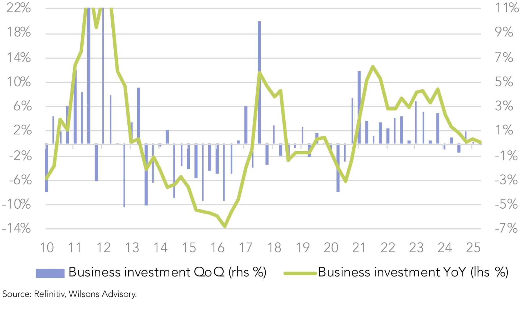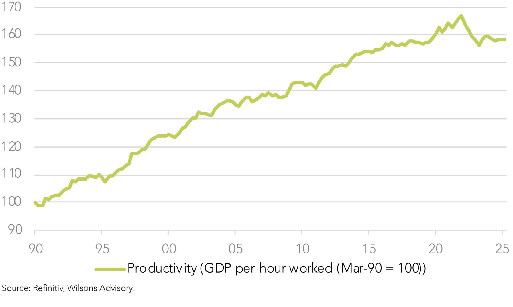 The growth transition from the public sector to the private sector appears underway, as consumption recovers with help from lower interest rates. However, the role of the business sector and productivity, as drivers of economic growth, is still underwhelming. These drivers need to kick into gear to reinvigorate GDP and private sector employment growth on a sustainable basis.