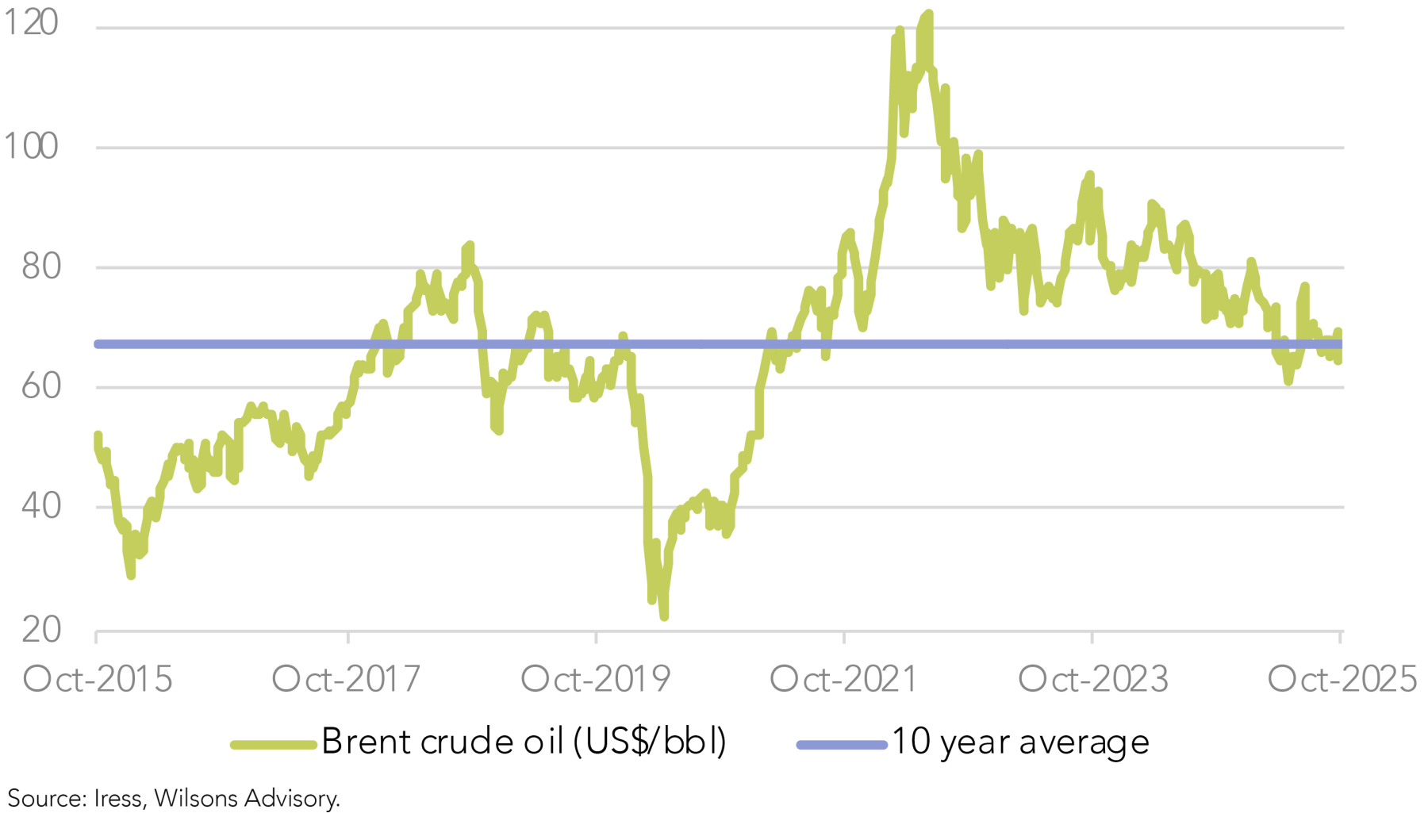 The Focus Portfolio has a neutral exposure to the Energy sector, with Santos as our sole position at a weighting of 3.5%. With Brent Crude oil currently trading at ~US$65/barrel, we view risks to the oil price (which the majority of LNG contracts are indexed to) as relatively balanced, with a range of forces to consider.