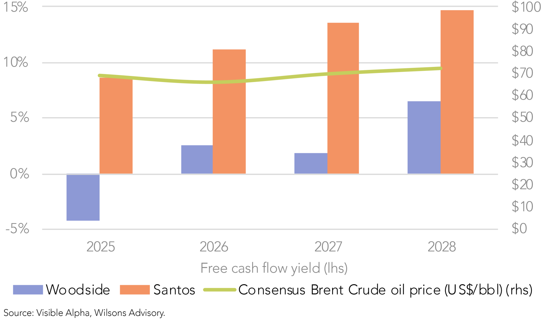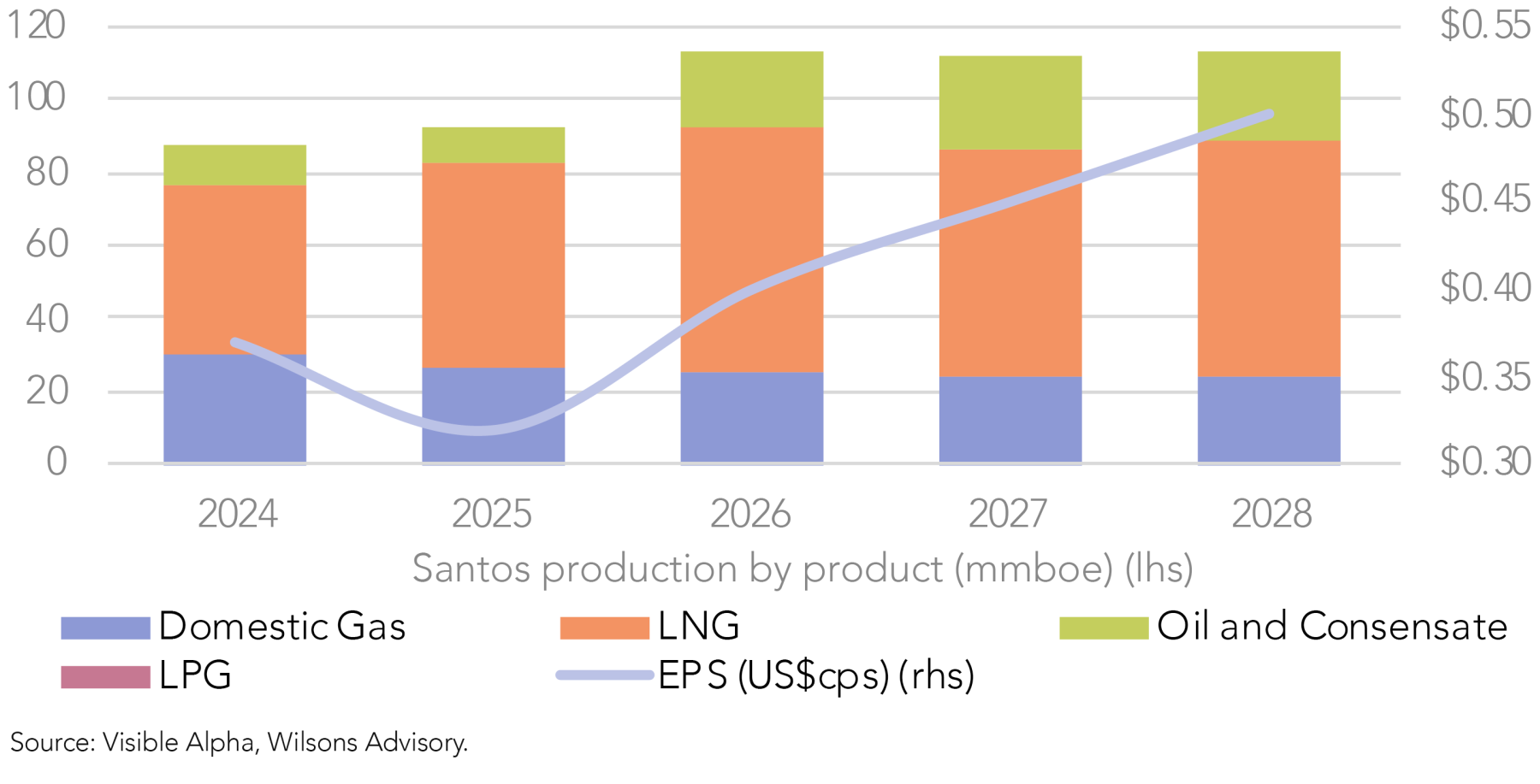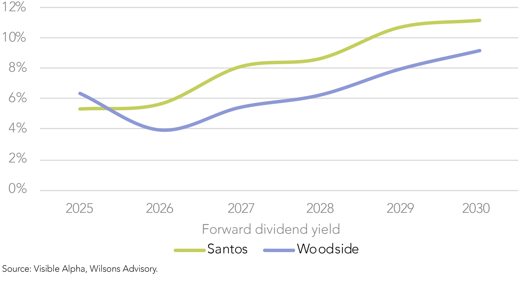 We expect Santos to be disciplined in its goal of maximising shareholder value. In light of this, consensus expects Santos’ dividends to grow by ~23% between FY26-28.
