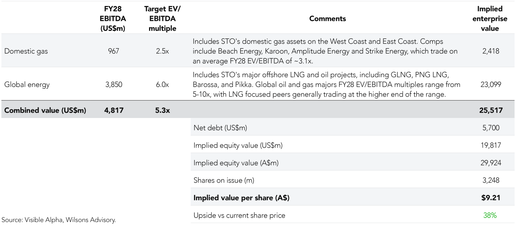 To assess how value accretive a demerger of Santos’ assets could be, we have conducted a sum-of-the-parts analysis of the group in Figure 9.