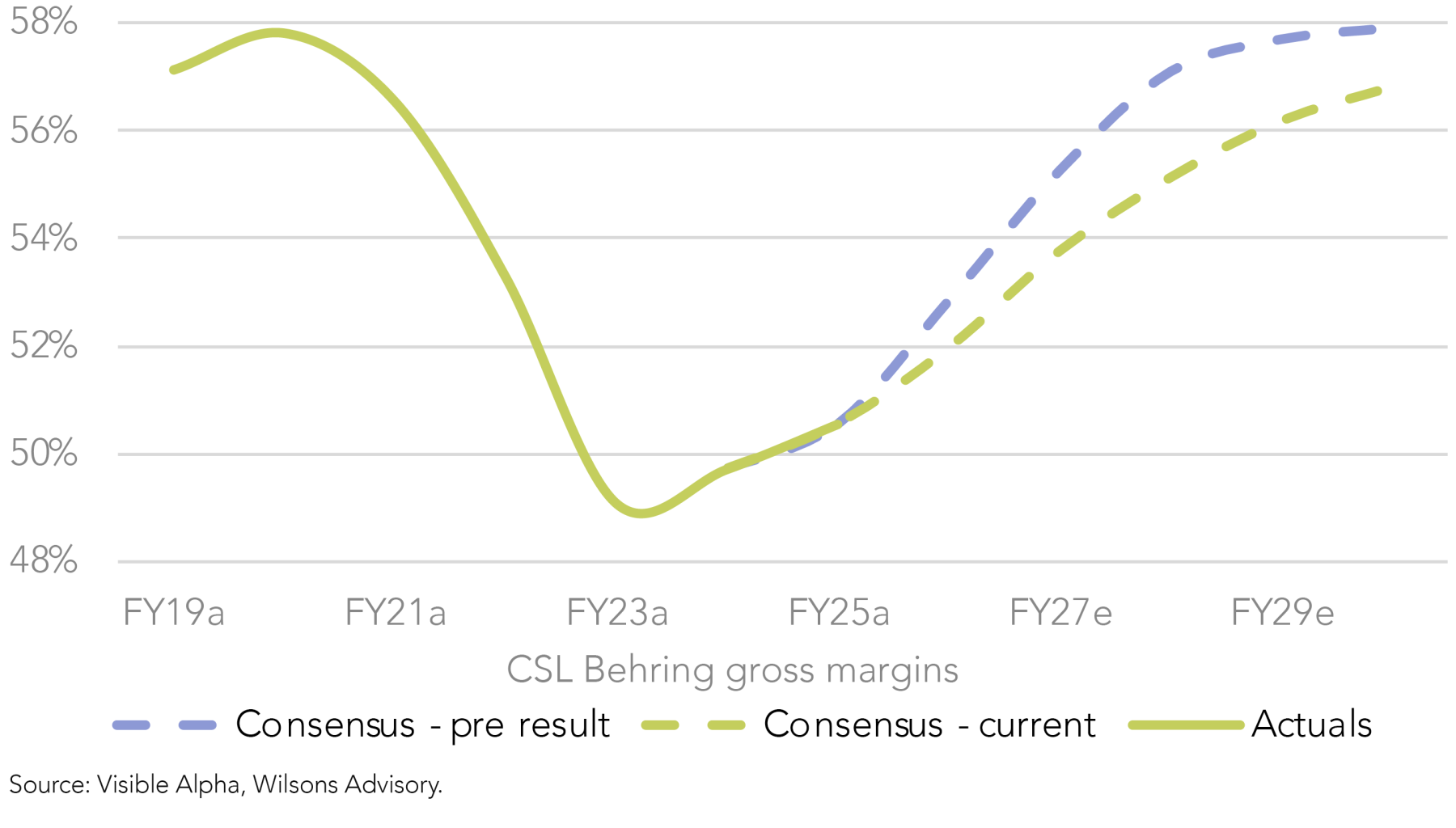 The most disappointing element was the -8% EBITDA miss by Behring – long regarded as CSL’s growth engine – driven by weakness in IG sales. Furthermore, management’s decision to abandon the timeline for Behring’s gross margin recovery, which has been central to CSL’s medium-term EPS growth outlook, has undermined our investment thesis.