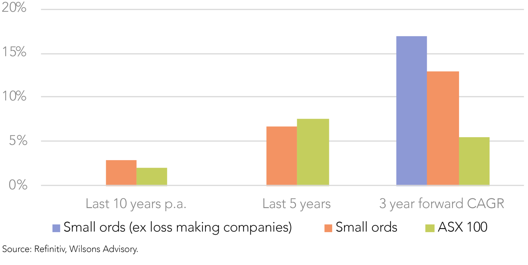 At this current juncture, small cap earnings are at an inflection point, poised to surpass the earnings growth of their larger peers. The inherent tilt of small cap companies toward higher cyclicality and leverage has weighed on their earnings over the past few years – a period marked by inflation, supply chain disruptions and elevated interest rates – allowing larger companies to grow earnings faster, benefitting from more resilient fundamentals including the ability to weather economic cycles and stronger pricing power. The current onset of the easing cycle has resulted in a materially improved forward earnings outlook for small cap companies, as seen in Figure 3. When excluding the impact of loss-making companies, the contrast is even more stark, offering a three year EPS CAGR of 16.9%, compared to the 5.5% CAGR offered by the ASX 100. Even without a re-rate, this is an opportune time to allow earnings to drive share price growth in quality smalls.