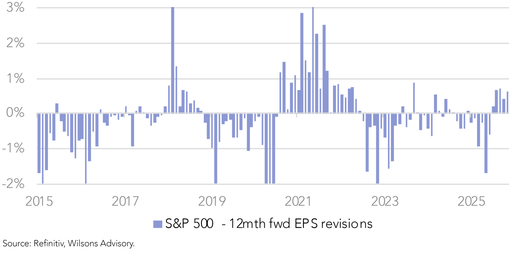 In summary, the US corporate sector has once again delivered strong aggregate earnings growth in the current reporting season, with estimates continuing to edge up. However, the current environment is not without its challenges. As a result of these macro uncertainties, the market upswing is unlikely to be smooth, with short-term risks currently elevated. However, a resilient profit cycle continues to provide positive support for the US share market over the medium-term.