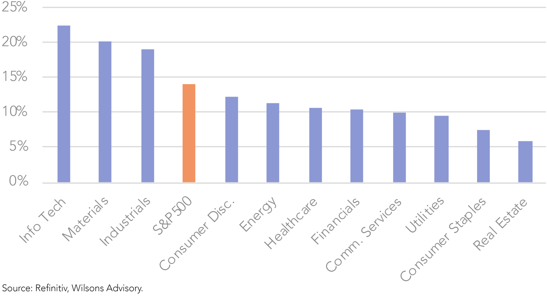 Outside of tech, the financial sector also stood out this reporting season with 21% growth. The sector delivered a fairly broad pattern of earnings beats across much of the sector.