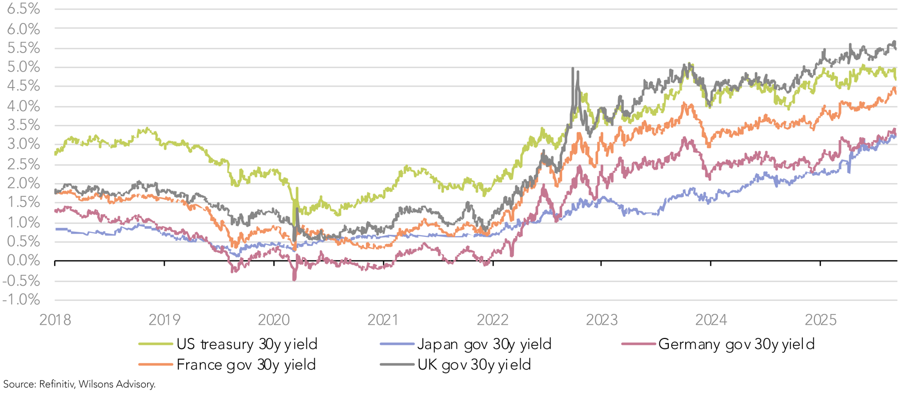 The very long end of yield curves (particularly 30-year yields) have been rising across the G7 as concerns around fiscal sustainability bubble to the surface again.