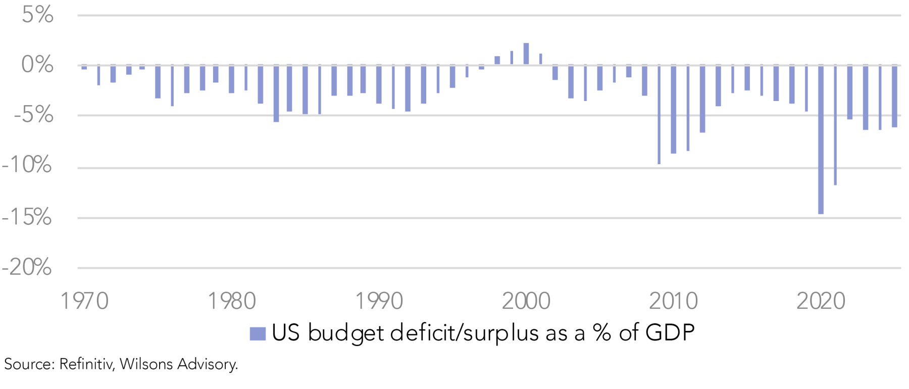 It is interesting that in this current easing cycle, beginning with the Fed’s first rate cut in September 2024, US bond yields are actually higher so far. It could be argued that a rising (fiscal deficit) term premium in US yields has dominated this time around. We do note that yields did rally aggressively in the three months leading into the first cut in September last year. However, it does appear that concerns around fiscal sustainability have increased the term premia embedded in the US yield curve this cycle. From our perspective, this does suggest that any drop in bond yields in coming months could prove relatively fragile.